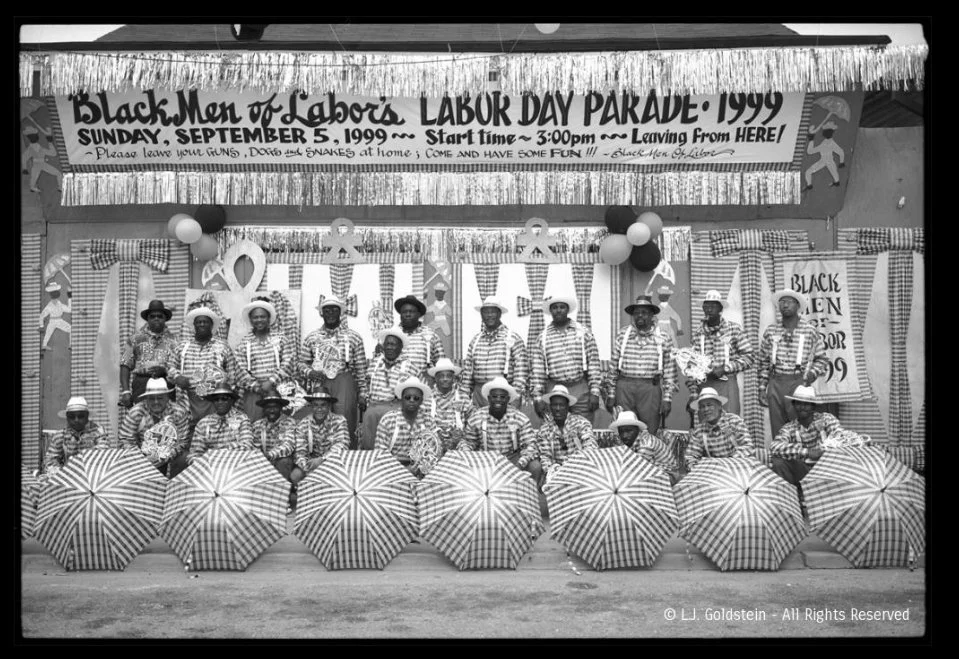 In 2005, the Black Men of Labor requested that this medium-format negative be enlarged to eight feet by twelve feet as a display print to adorn their clubhouse for their annual second line parade. (You can see where it was hung between the two sets of balloons in the photograph itself.)